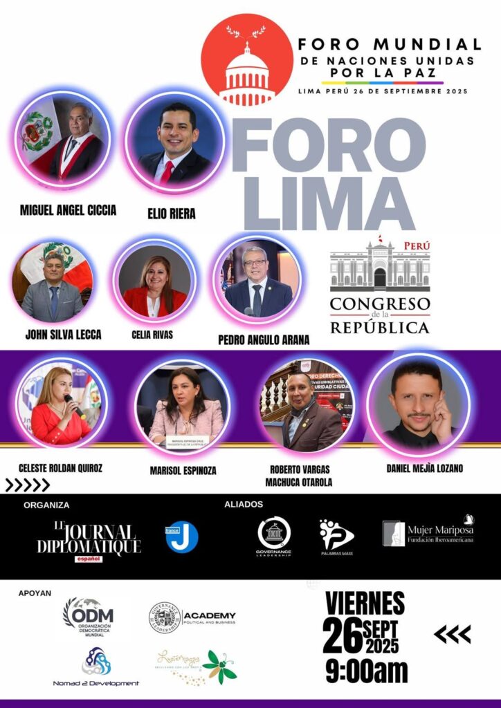 Este 26 de septiembre, Lima será sede del Foro Mundial de Naciones Unidas por la Paz, un evento que congregará a líderes políticos, expertos internacionales y jóvenes comprometidos con la defensa del Derecho Internacional Humanitario. El encuentro se desarrollará en el Congreso de la República del Perú y busca promover nuevas rutas hacia la construcción de la paz global.
