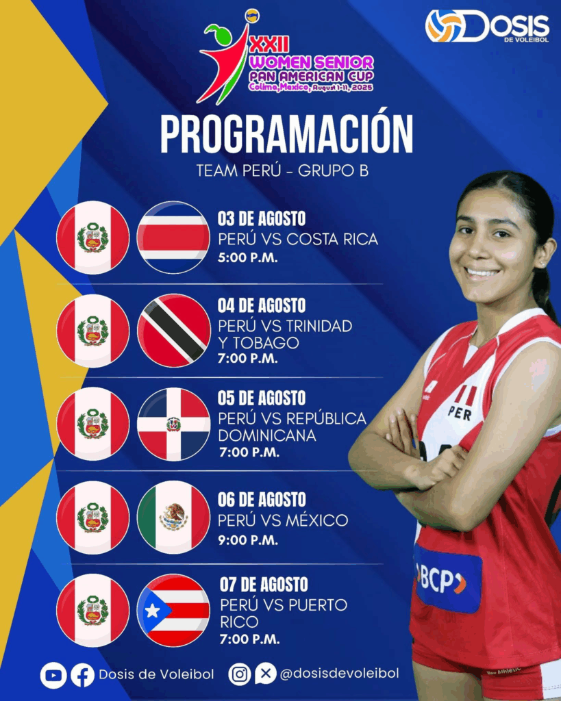 La selección peruana femenina de vóley se prepara para un nuevo desafío internacional con su debut en la Copa Panamericana de Vóley 2025, que tendrá lugar en Colima, México. El elenco nacional, bajo la dirección técnica del brasileño Antonio Rizola, disputará su primer partido este domingo 3 de agosto a las 5:00 p.m. frente a Costa Rica.