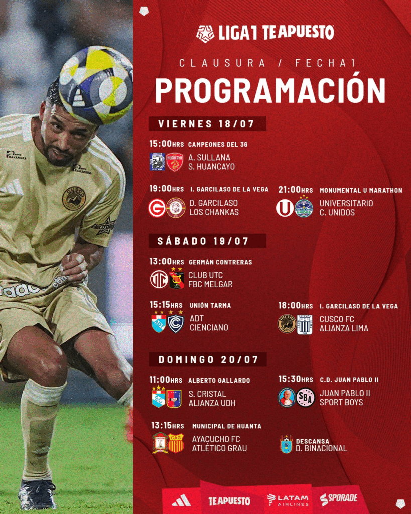 El Torneo Clausura arranca hoy viernes 18 de julio con todos los equipos desde cero. La ‘U’ iniciará su camino hacia el tricampeonato, mientras Alianza Lima buscará la revancha con nuevos refuerzos tras quedar segundo en el Apertura.