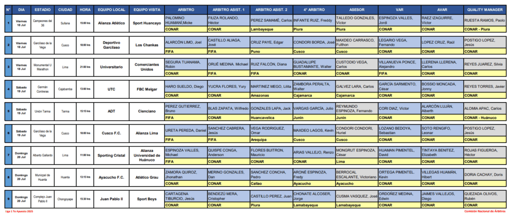 La Comisión Nacional de Arbitraje (CONAR) publicó la lista de árbitros que impartirán justicia en los encuentros del fin de semana.